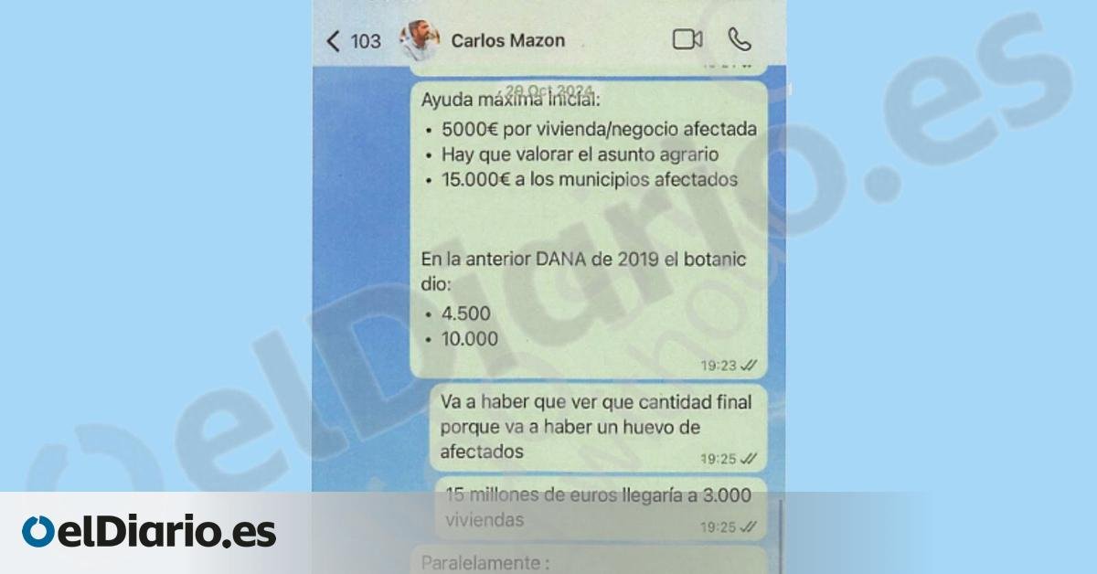 대통령실 지역 비서인 Cayetano García Ramírez는 S-Alert가 전송되기 45분 전에 Carlos Mazón에게 WhatsApp 메시지를 썼는데, 그 고위 관리는 “사람들의 알이 있을 것입니다”라고 예측했습니다. 그는 ‘정신치료 서비스’와 또 다른 ‘부양가족 재배치’를 제안했다.