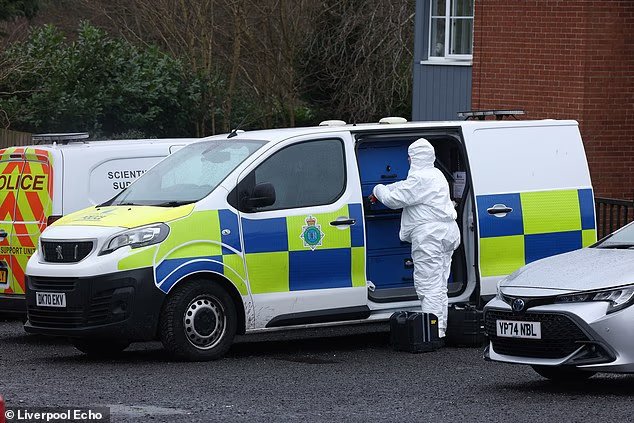 목요일 머지사이드 세인트 헬렌스의 한 아파트에서 ‘신원 미상의’ 유해가 발견된 후 현장에서 법의학 조사가 실시됐다.