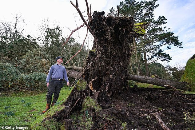 상징적인 섬인 세인트 마이클스 마운트(St Michael’s Mount)에서 폭풍으로 인해 수십 그루의 나무가 뿌리째 뽑혔습니다. 다른 곳에서는 나무가 뿌리째 뽑히고 무덤도 뽑혔습니다.